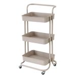 Τρόλεϊ με μεταλλικό σκελετό και τρία πλαστικά καλάθια με διχτυωτό πάτο το καθένα σε μπεζ ματ χρώμα. Διαθέτει μεταλλικό στοπ στις δύο ρόδες και χειρολαβή για εύκολη χρήση στη μεταφορά. Η διάσταση του καλαθιού είναι 40x30x7,5εκ.