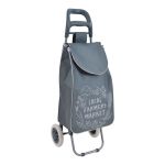 Καροτσάκι λαϊκής μεταλλικό με αδιάβροχο σάκο από πολυεστέρα, κλείνει με κορδόνι,διαθέτει πλαστική εργονομική λαβή κ έχει στο πίσω μέρος του τσεπάκι με φερμουάρ.Το χρώμα του είναι μπλε με σχέδιο ζαρζαβατικά κ η διάσταση της τσάντας 27x18x54εκ.