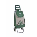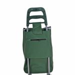 Καροτσάκι λαϊκής μεταλλικό με αδιάβροχο σάκο από πολυεστέρα, κλείνει με κορδόνι,διαθέτει πλαστική εργονομική λαβή κ έχει στο πίσω μέρος του τσεπάκι με φερμουάρ.Το χρώμα του είναι πράσινο με σχέδιο ελιά και η διάσταση της τσάντας 27x18x54εκ
