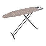 Σιδερώστρα με μεταλλικά μαύρα ματ πόδια,μεγάλη επιφάνεια σιδερώματος,ρύθμιση και ασφάλεια ύψους από 78 έως 95εκ.,θέση τοποθέτησης για το σίδερο και αντιολισθητικά ποδαράκια για μεγάλη ευστάθεια και σταθερότητα. Διαθέτει κάλυμμα 100% βαμβακερό.