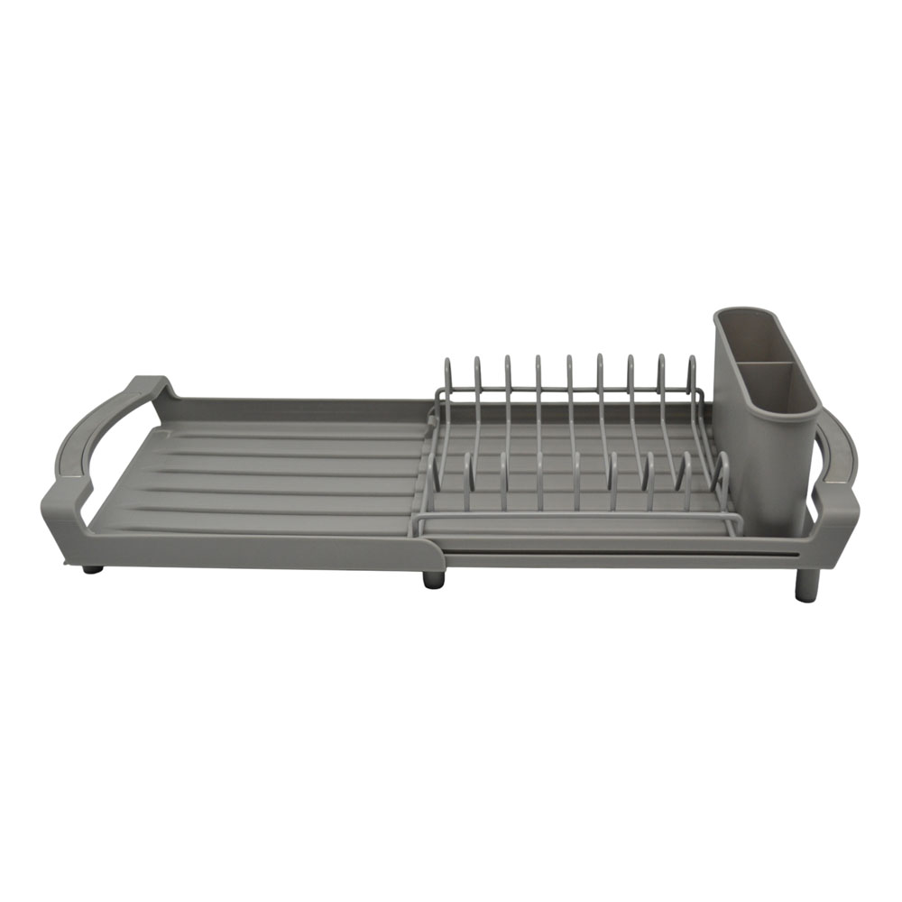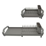 Επεκτεινόμενη πιατοθήκη πλαστική, ιδανική για ευέλικτη οργάνωση στον πάγκο της κουζίνας. Διαθέτει πρακτικό επεκτεινόμενο δίσκο που προσαρμόζεται ανάλογα με τις ανάγκες σας, αυξάνοντας τη διαθέσιμη επιφάνεια στεγνώματος. Το πλαίσιο είναι από ανθεκτικό πλαστικό υλικό, ενώ η βάση που συγκρατεί τα πιάτα είναι μεταλλική για μεγαλύτερη σταθερότητα και αντοχή στη χρήση. Περιλαμβάνει αποσπώμενη κουταλοθήκη και αντιολισθητικά ποδαράκια για ασφαλή τοποθέτηση. Διαστάσεις κλειστή: 30x19,6x12,5εκ. Διαστάσεις επεκτεινόμενη: 49,2x19,6x12,5εκ.