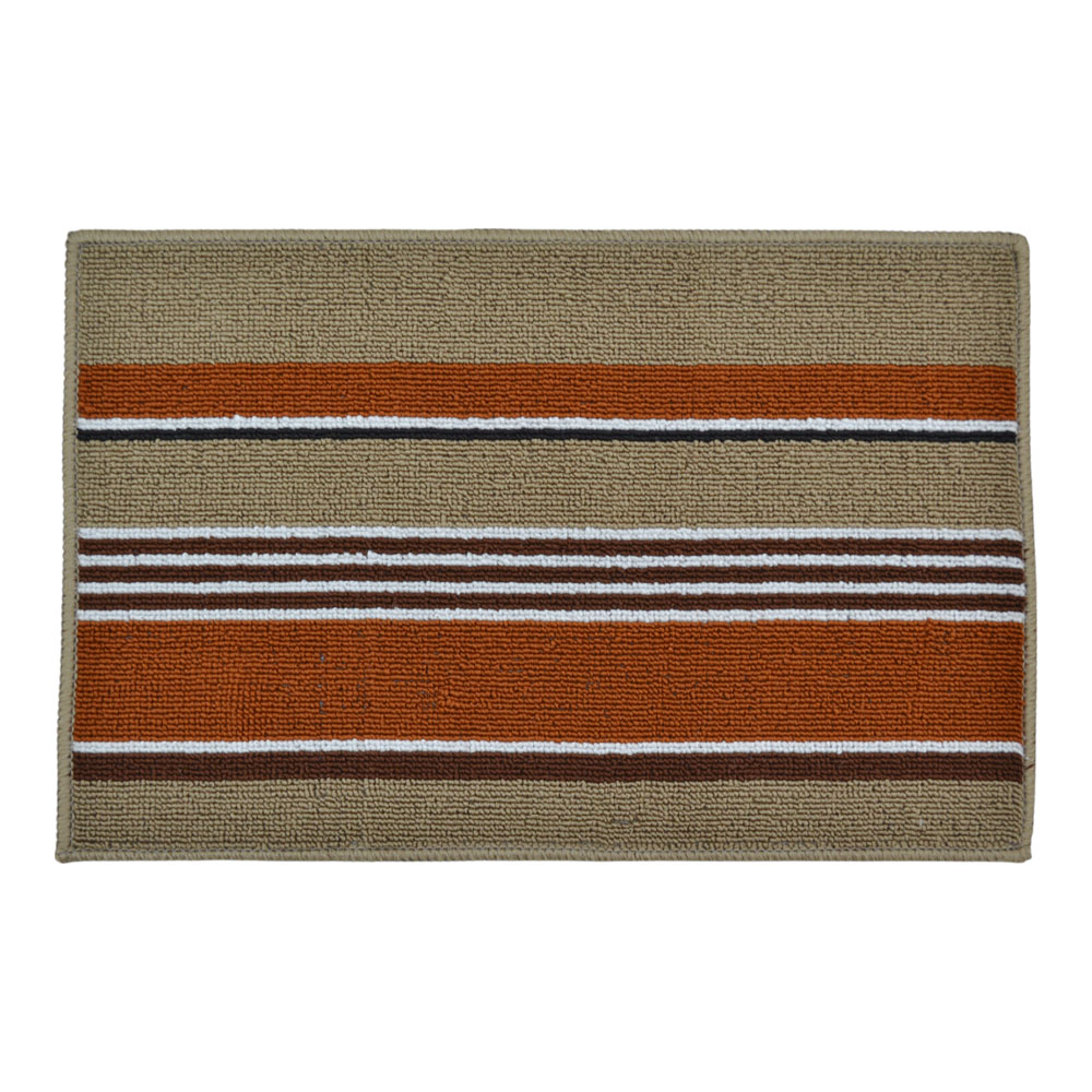 Πατάκι με αντιολισθητική βάση TPR, σε γήινες αποχρώσεις με σχέδιο οριζόντιες ρίγες. Μαλακό και απορροφητικό, στεγνώνει γρήγορα και παραμένει σταθερό χάρη στη βάση του, προσφέροντας ασφάλεια και άνεση.