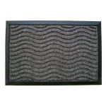 Ταπέτο εισόδου με γκρι μοκέτα,σχέδιο κύμματα και μαύρη πλάτη από καουτσούκ.Ποδόμακτρο κατάλληλο για εξωτερικό χώρο με πολύ μεγάλη ανθεκτικότητα,προστατεύει από λάσπες και βρωμιά και καθαρίζεται πολύ εύκολα.