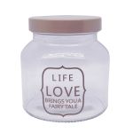 Βάζο γυάλινο χωρητικότητας 0,6 λίτρο με μεταλλικό καπάκι και επιγραφή Life Love.