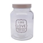 Βάζο γυάλινο χωρητικότητας 1,0 λίτρο με μεταλλικό καπάκι και επιγραφή Life Love.