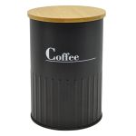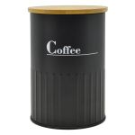 Βάζο μεταλλικό σε μαύρο ματ χρώμα με διακριτική διακόσμηση ανάγλυφες γραμμές, άσπρη επιγραφή Coffee και καπάκι από ξύλο μπαμπού. Συνδυάστε το με τα υπόλοιπα αντικείμενα της σειράς και ανανεώστε τον χώρο σας.