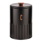 Βάζο μεταλλικό σε μαύρο ματ χρώμα με ανάγλυφες ρίγες στο κάτω μέρος, rose gold διακόσμηση και επιγραφή C. Συνδυάστε το με τα υπόλοιπα αντικείμενα της σειράς και ανανεώστε τον χώρο σας.
