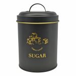 Βάζο μεταλλικό με μαύρο ματ φινίρισμα και διακριτικές χρυσές λεπτομέρειες. Ιδανικό για την αποθήκευση και προστασία της ζάχαρης. Η ανθεκτική κατασκευή του και το καπάκι με εργονομική λαβή εξασφαλίζουν εύκολη χρήση και διατήρηση της φρεσκάδας.