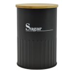 Βάζο μεταλλικό σε μαύρο ματ χρώμα με διακριτική διακόσμηση ανάγλυφες γραμμές, άσπρη επιγραφή Sugar και καπάκι από ξύλο μπαμπού. Συνδυάστε το με τα υπόλοιπα αντικείμενα της σειράς και ανανεώστε τον χώρο σας.